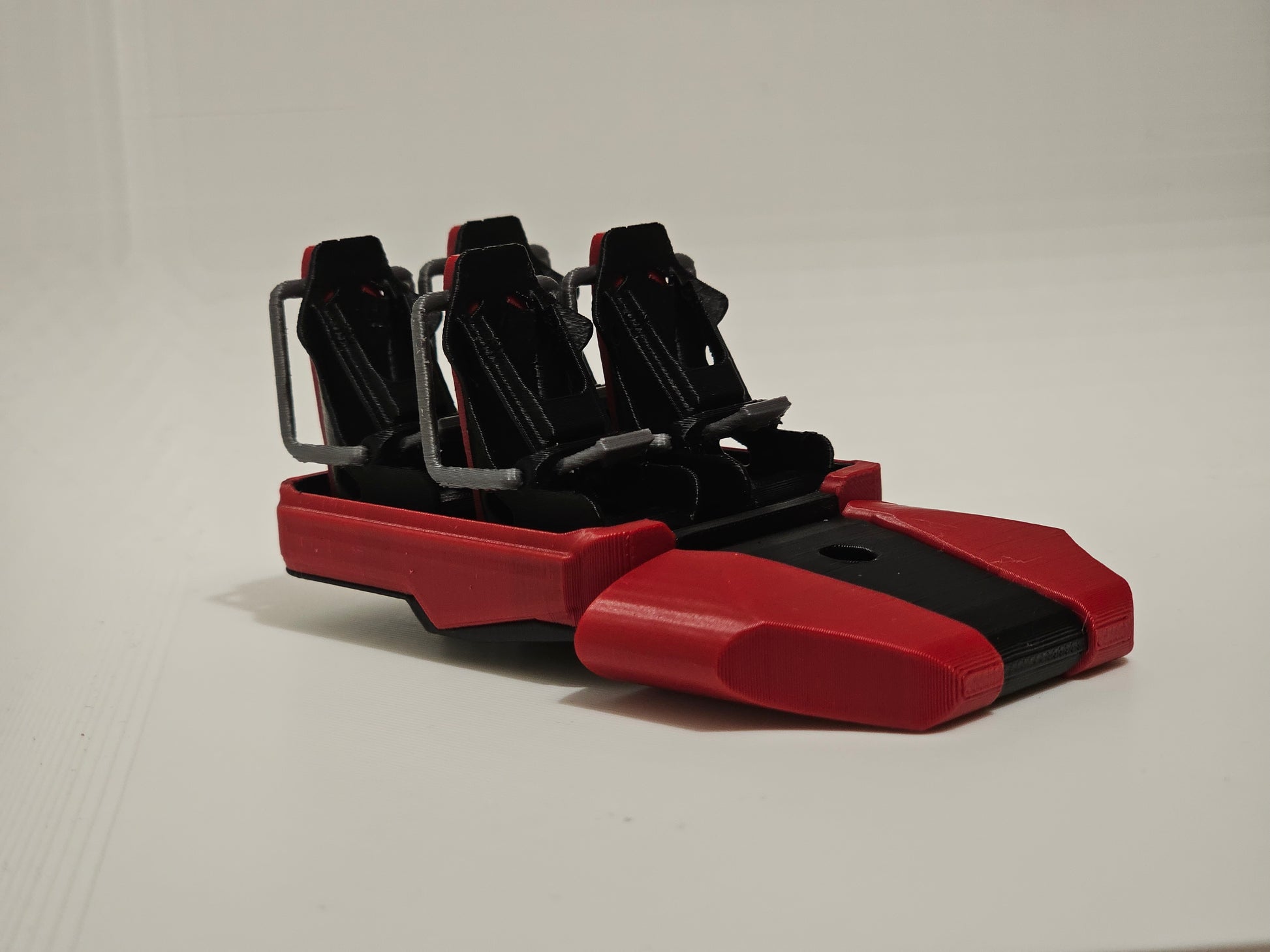 The V2-compatible Vekoma MK1101 Style Top Design features a uniform mounting system for both front and middle cars. (Front and middles are the same, Front just include a zero car)